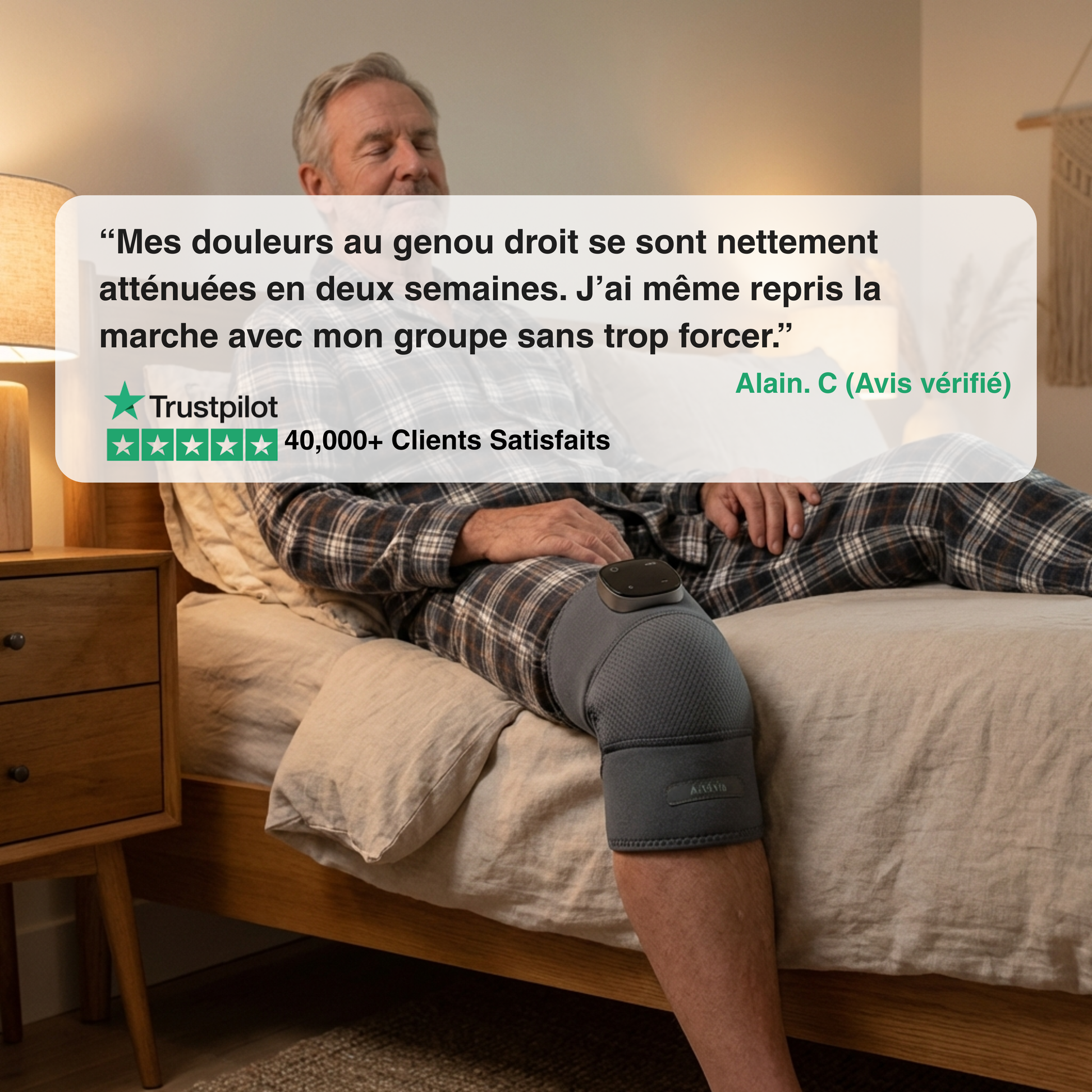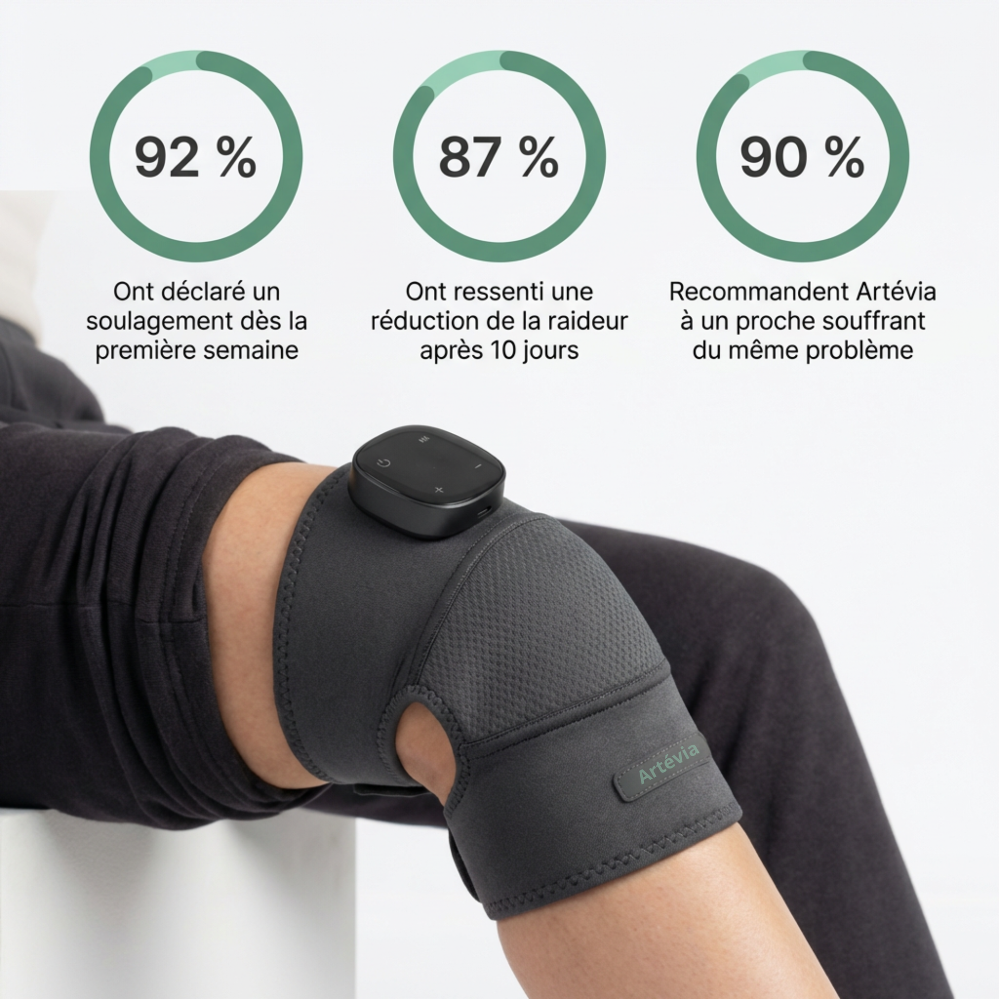 Artévia offre du soulagement concret, pensé pour des genoux qui ont vécu. Pas de boutons compliqués. Pas de déception. Juste un appareil qui comprend ce que c'est que d'avoir 50 ans et de vouloir rester actif. Vous ne voulez pas ralentir. Vous voulez juste arrêter d'avoir mal.