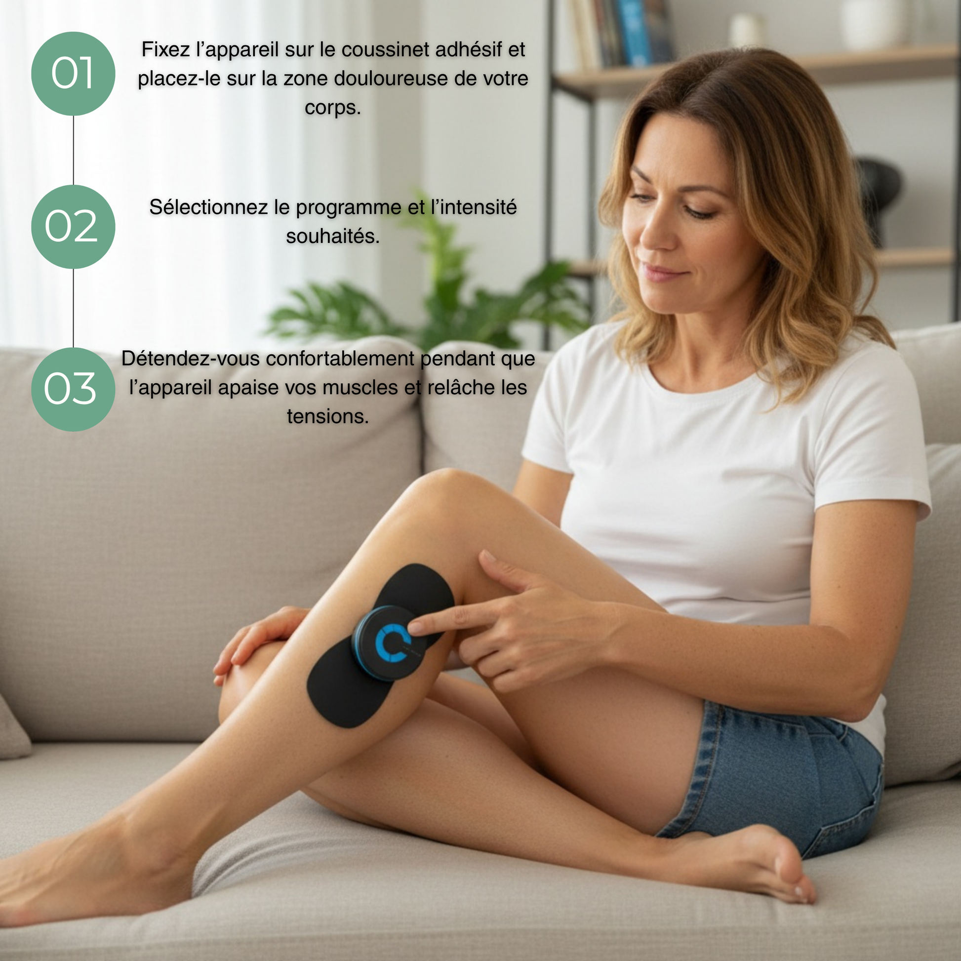 La promesse est simple : 15 minutes d'utilisation, et vous sentez la différence. LiberaPulse envoie des impulsions EMS ciblées pour détendre les muscles tendus et activer la circulation. Résultat ? Une sensation de légèreté, une mobilité retrouvée, et un sourire qui revient.