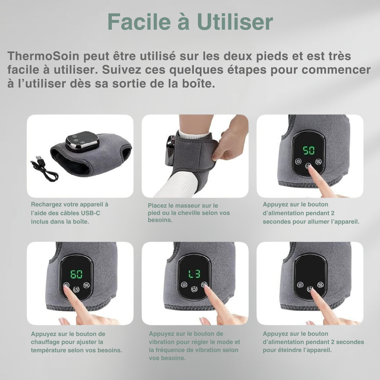 Plus besoin de courir les rendez-vous médicaux : avec ThermoSoin, le soulagement vient à vous. En quelques minutes seulement, la chaleur ciblée détend les zones douloureuses, apaise les nerfs enflammés, et vous offre un bien-être tangible. Vous sentez vos pieds revivre, votre corps se relâcher… et tout cela, depuis votre fauteuil préféré.